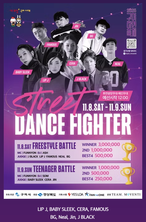 - 스트릿댄스파이터: 11.8~11.9, 오후 (청소년·일반부 경연, 심사위원 Neal, Jin 등)