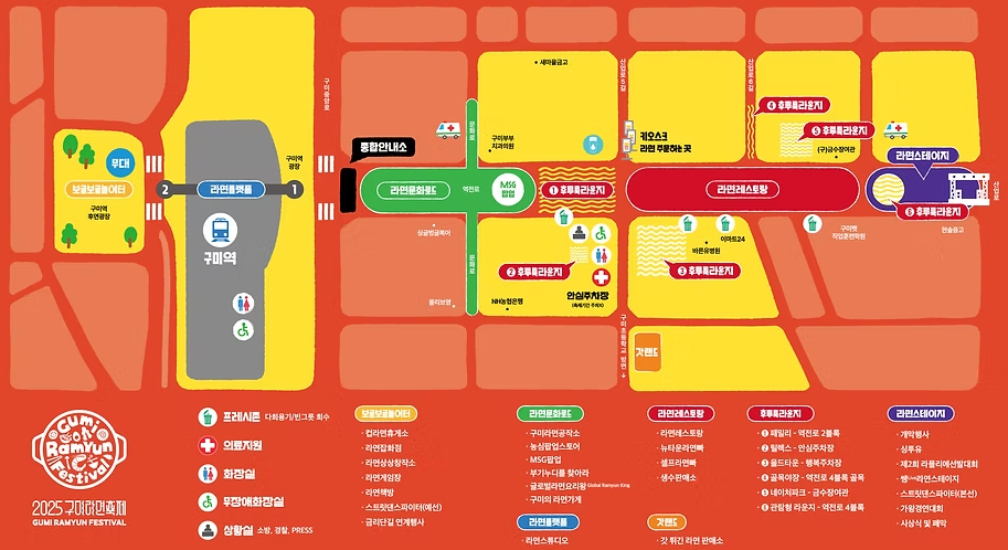 축제는 라면 시식, 체험, 공연으로 나뉘어 구미역 주변에 배치돼 동선이 편리합니다. 아래 표로 주요 일정을 확인해 보세요.