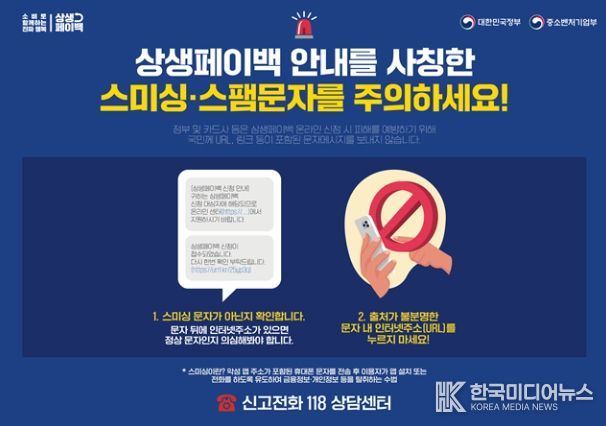신청 시 주의해야 할 점도 있습니다. 최근 상생페이백과 관련된 스미싱 및 스팸 메시지가 증가하고 있으니, 개인 정보를 요구하는 메시지에는 주의해야 합니다. 정부에서 발송하는 메시지는 개인 정보를